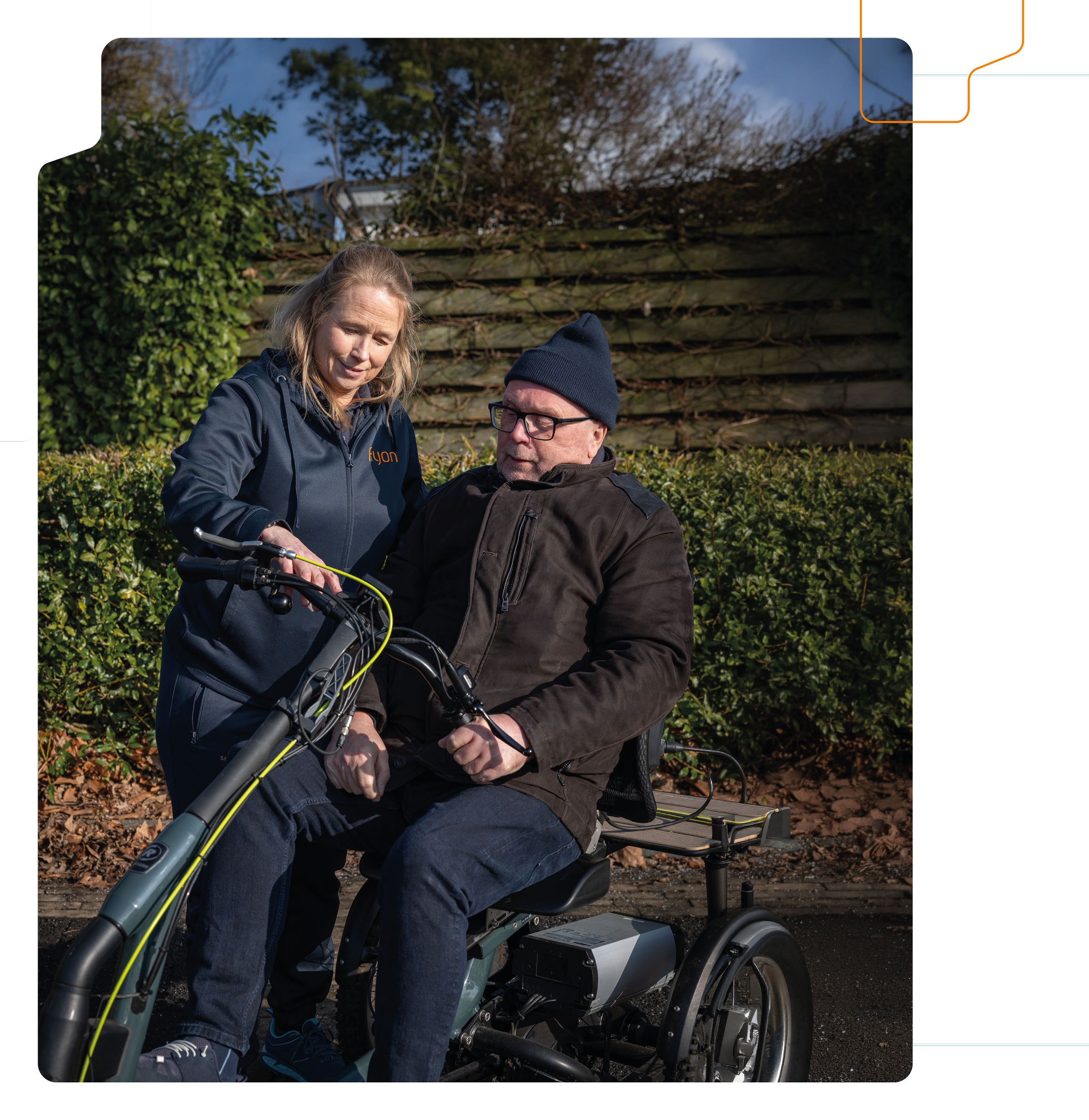 Pour que les gens se sentent en confiance et en sécurité lorsqu'ils se déplacent, Marloes prévoit toujours quelques “séances de vélo” avec ceux qui optent pour un tricycle. « Nous commençons toujours très lentement. Je marche à côté et je tiens la personne par la main. À chaque fois, nous allons un peu plus loin. Finalement, nous faisons ensemble le trajet que la personne emprunte souvent, par exemple de chez elle au supermarché. De cette façon, ils savent exactement à quoi s'attendre en chemin. J'examine également la situation à domicile avec le client. Y a-t-il des seuils ou des ralentisseurs près de chez lui ? Comment faire entrer et sortir le vélo du garage ou de l’abri à vélo ? Ce genre de choses est important. Parfois, tout se passe très bien après quelques essais, et d'autres personnes ont besoin d’un peu plus de temps, et continuent à pratiquer avec leur thérapeute. »